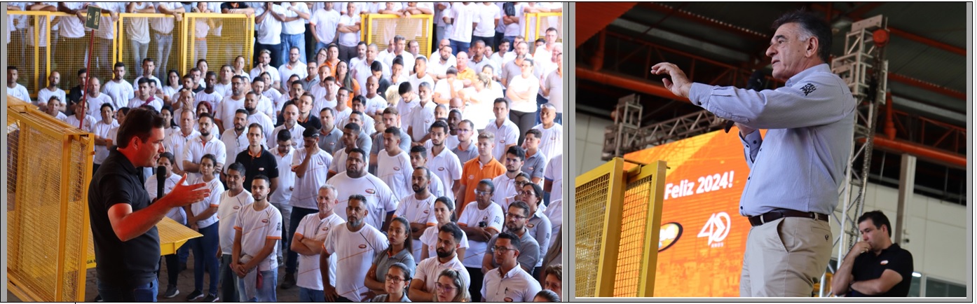 Na ocasião, os integrantes da diretoria, incluindo o presidente Flávio Peres, o CEO Samuel Peres e a diretora de Marketing e RH, Mariane Peres, tiveram a oportunidade de falar com as equipes dos diferentes setores da fábrica.