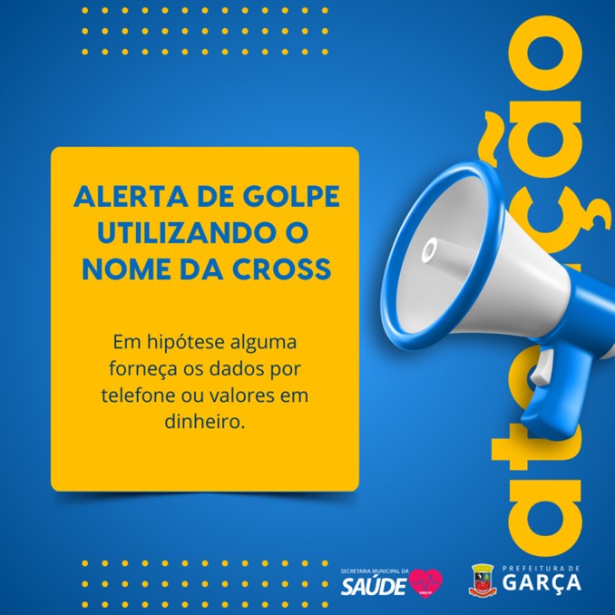 A Prefeitura informa que recebeu um alerta do Grupo de Regulação da Coordenadoria de Regiões de Saúde (CRS) da Secretaria de Estado da Saúde de São Paulo (SES-SP) sobre uma grave tentativa de golpe que está sendo praticada utilizando o nome da Central de Regulação de Ofertas de Serviços de Saúde (CROSS).