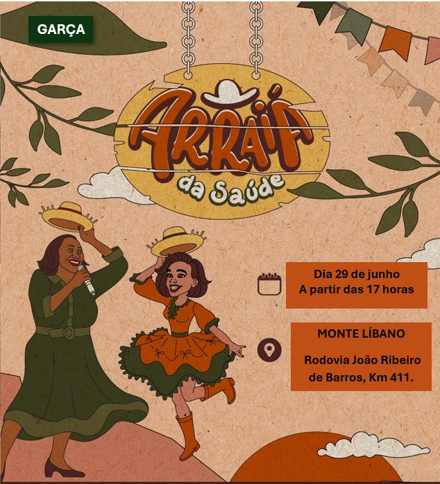 A subsede do Sinsaúde (Sindicato dos Trabalhadores na Saúde) de Garça convida todos para um Arraiá bem animado! A festa acontece nesse sábado, dia 29, e promete muita diversão com comidas típicas e música boa.