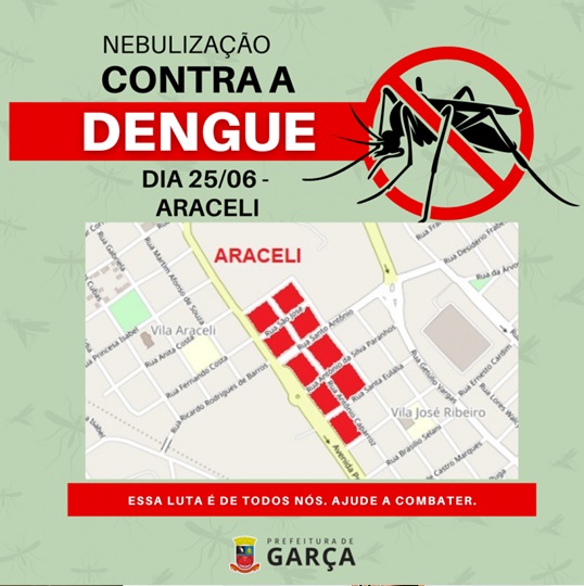 Dengue: hoje, dia 25, tem nebulização no bairro Araceli