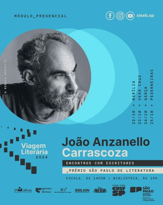 Hoje, dia 24 de outubro, Garça recebe mais uma edição do Viagem Literária. Desta vez o programa traz o escritor João Anzanello Carrascoza, para dois encontros exclusivos com os amantes da literatura.