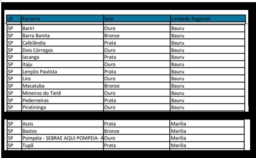 Na região de Bauru, 12 municípios foram premiados: Bariri, Barra Bonita, Cafelândia, Dois Córregos, Iacanga, Itaju, Lençóis Paulista, Lins, Macatuba, Mineiros do Tietê, Pederneiras, Piratininga.