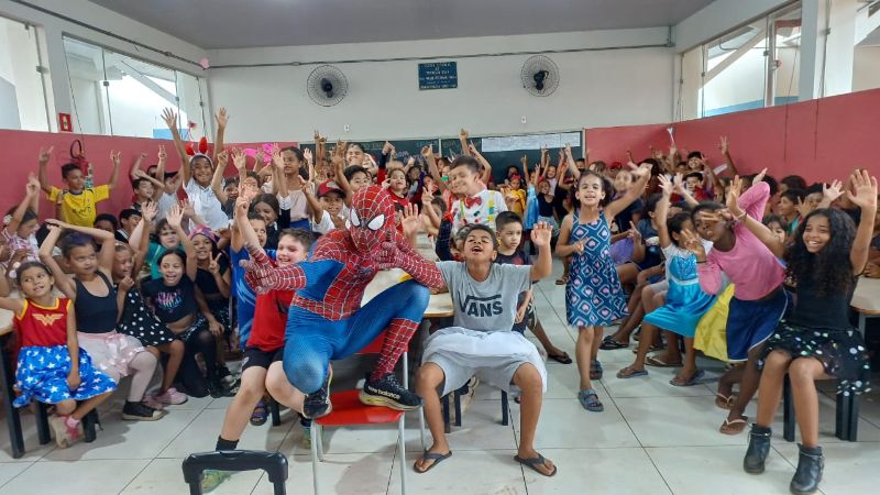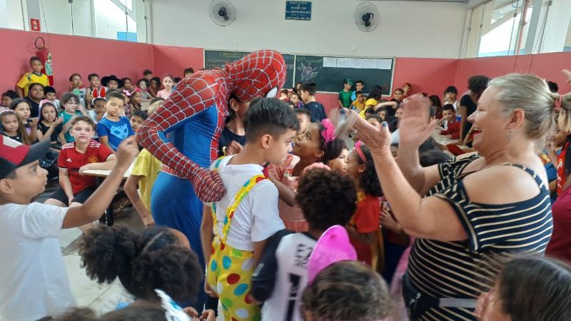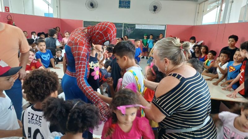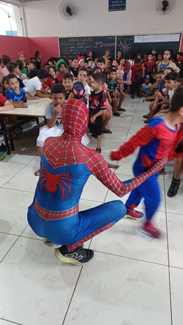Olhos brilhando, sorrisos largos e muita imaginação! Assim foi a recepção dos alunos do Ensino Fundamental da rede municipal durante a animada visita da equipe da ACIG – Associação Comercial e Industrial de Garça acompanhada do super-herói mais querido do mundo: o Homem-Aranha!