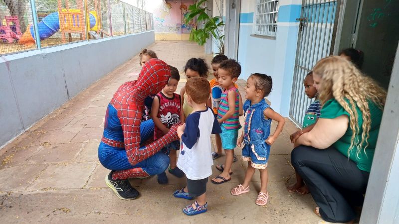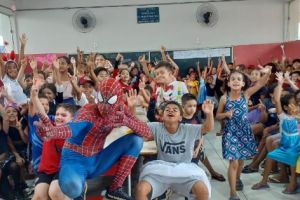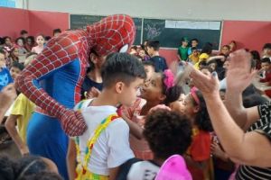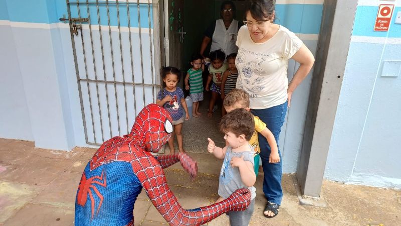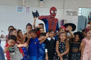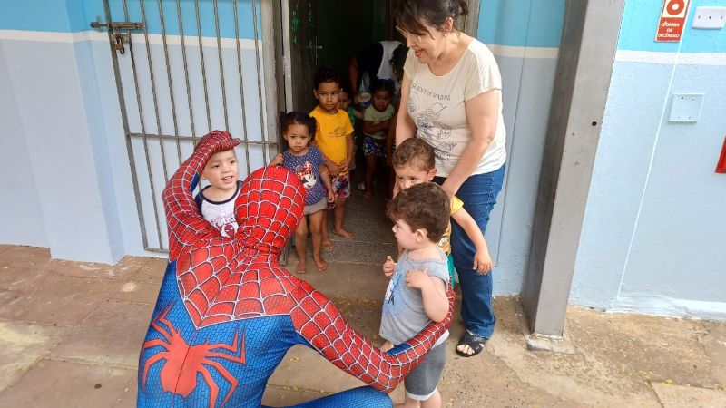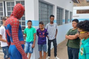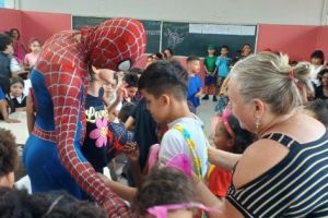 ACIG e “Homem-Aranha” fazem a festa nas escolas e convidam crianças para um fim de semana mágico no comércio de Garça